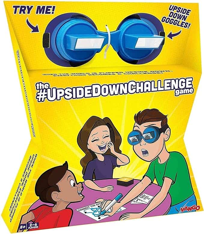 I LOVE that this made the list. It tells me y’all are all having a ton of fun with your kids. This game is silly and hilarious and so, so fun. You wear a pair of mirrored goggles that make everything appear upside down. Then, you have to complete timed challenges while wearing them. Things like drawing a stick figure, pouring water from one glass to another, or high fiving the person next to you. It’s a riot, and one of our favorite games!