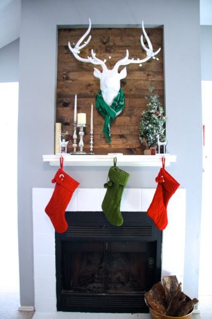 The Deer over the mantle with the lights and the scarf is the best!